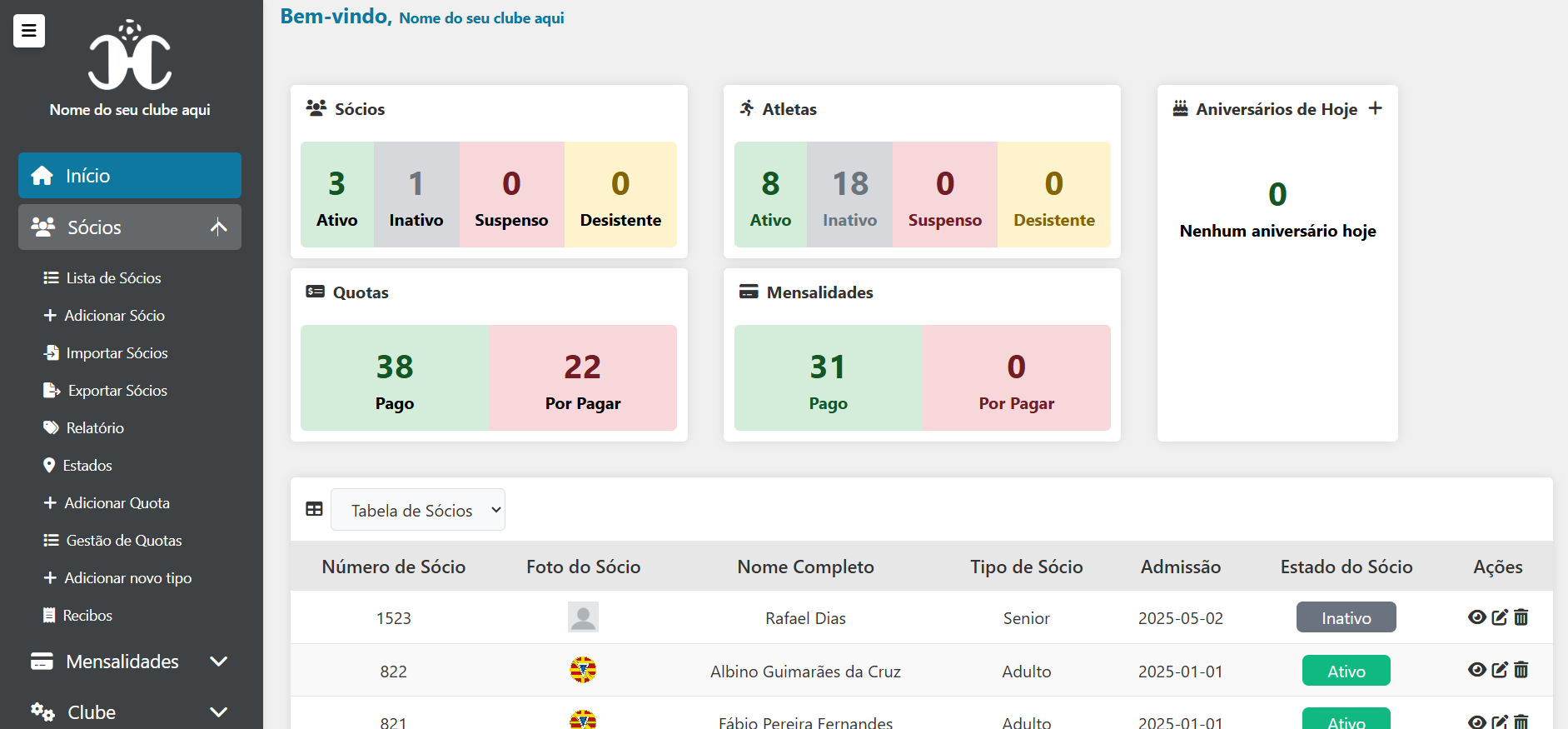 - Gestão de Sócios