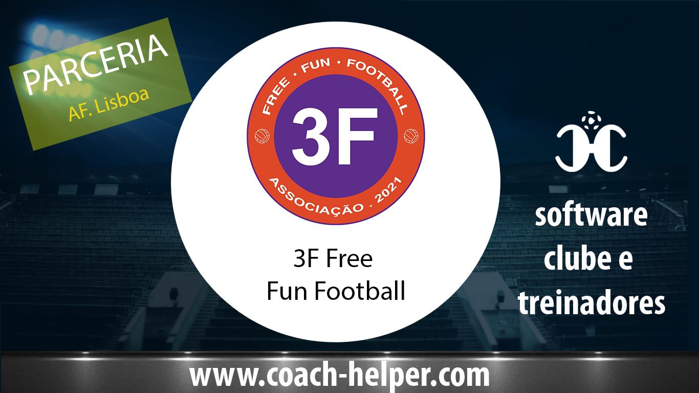 O clube 3F Free Fun Football, adere ao software Coach-Helper.Com. Clube filiado na Associação de Futebol de Lisboa beneficia de regalias especiais devido à Parceria entre o Coach-Helper e a própria AF. Lisboa (as Associações que fecham parceria com o Coach-Helper estão a ajudar diretamente os clubes seus filiados a modernizarem-se ao nível tecnológico e com os preços mais baixos do mercado).